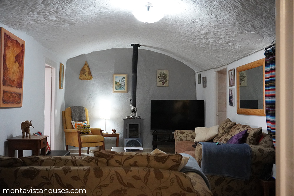 La casa es una luminosa casa cueva con ventanas en casi todas las habitaciones, excepto en dos dormitorios (aunque aquí se pueden crear ventanas. La cueva es agradablemente cálida en invierno y fresca en verano. Se proporcionan todas las comodidades: